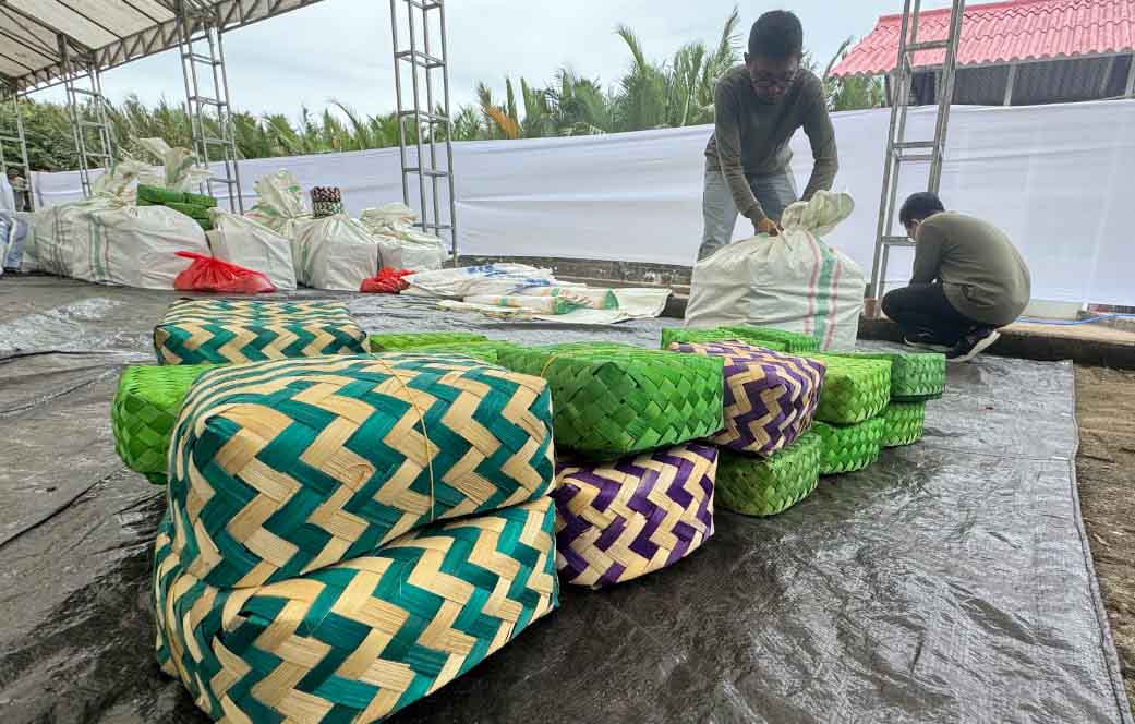 PT Pertamina Patra Niaga Regional Sulawesi mengganti kantong plastik dengan besek bambu untuk membungkus daging kurban. Dok: Pertamina