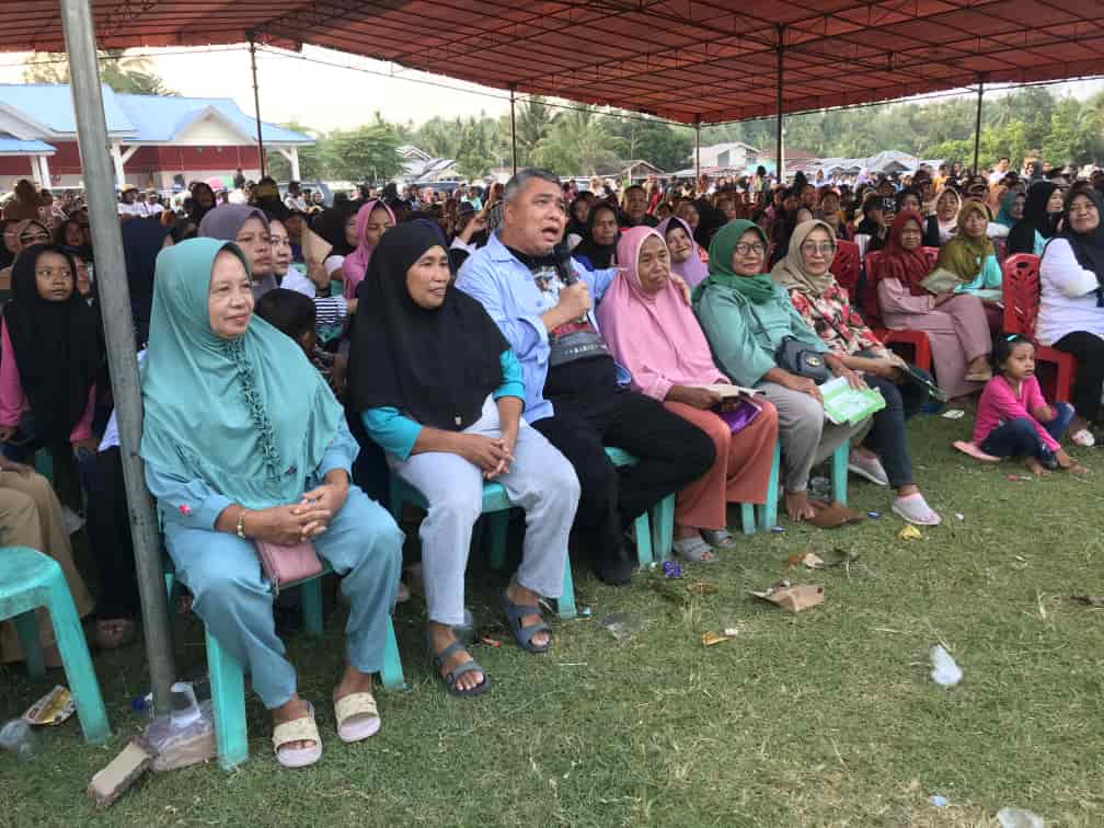 RIBUAN warga memadati lapangan Desa Pagimana, Kecamatan Pagimana, Kabupaten Banggai, Jumat (25/10/2024) sore, dalam kampanye terbatas calon gubernur Sulawesi Tengah nomor urut 1, Ahmad HM Ali.
