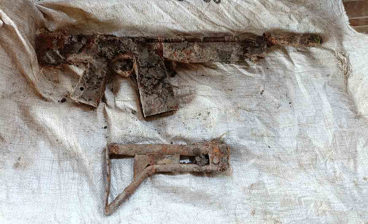 R terus menggali dan menemukan bagian badan senjata api yang tidak terbungkus dan terlihat berkarat. Menyadari temuannya, R segera melaporkan temuan itu kepada pihak berwajib.