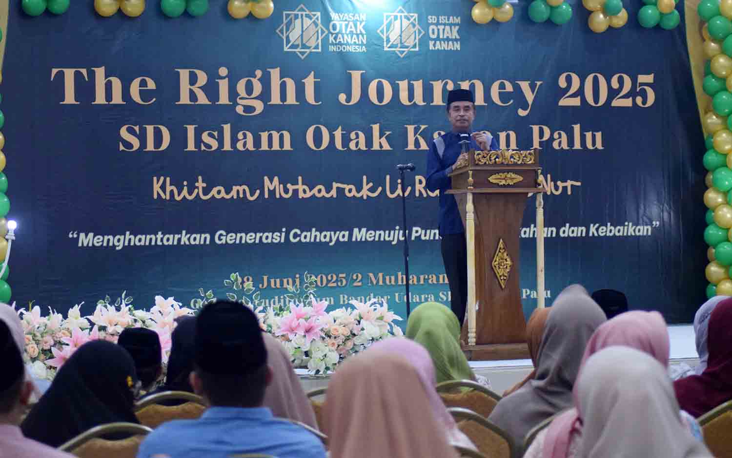 PEMERINTAH Kota Palu mendukung The Right Journey 2025 SD Islam Otak Kanan Palu di Auditorium Bandara Mutiara Sis Al-Jufri, Sabtu (28/6/2025). Acara ini menjadi puncak pembelajaran siswa dalam membangun karakter islami dan kecintaan pada ilmu.