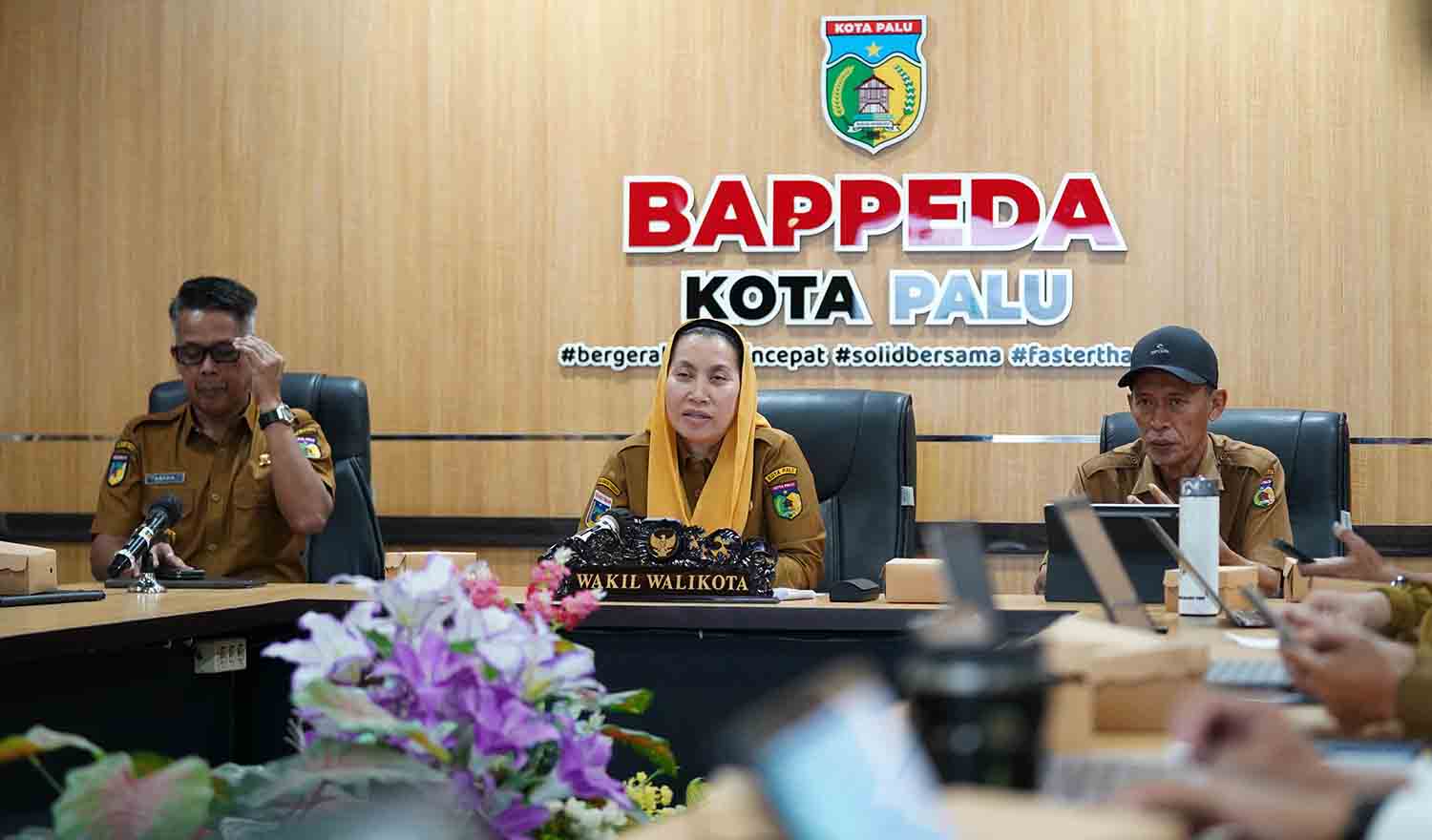 Wakil Wali Kota Palu, Imelda Liliana Muhidin, memimpin rapat koordinasi bersama Organisasi Perangkat Daerah (OPD) terkait, Senin (4/8/2025) di ruang rapat Bappeda Kota Palu.