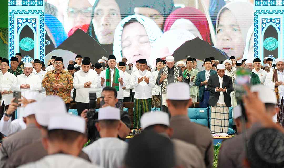 Gubernur Sulteng, Anwar Hafid (tengah) bersama seluruh tamu undangan berdoa bersama saat menghadiri Haul ke-58 Habib Sayyid Idrus bin Salim Aljufri atau Guru Tua di kompleks Alkhairaat, Kota Palu, Rabu (1/4/2026). Foto: Humas Pemprov Sulteng/Eranesia.id
