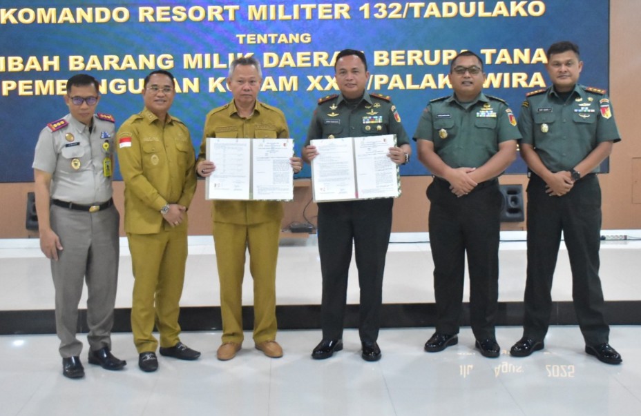 KOREM 132/Tadulako, Sulawesi Tengah menerima hibah tanah dari Pemkab Sigi untuk pembangunan kantor Kodam XXIII/Palaka Wira. Penyerahan dilakukan Bupati Sigi, Moh Rizal Intjenae, kepada Danrem 132/Tadulako, Brigjen Deni Gunawan, di Palu, Senin (4/8/2025).
