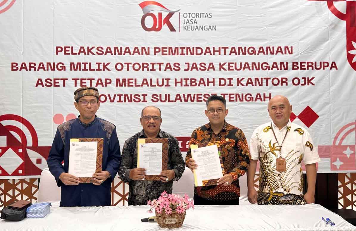 OTORITAS Jasa Keuangan (OJK) Sulawesi Tengah menghibahkan aset tetap kepada Yayasan Alkhairaat Sayyid Idrus Bin Salim Aljufrie. Penyerahan hibah berlangsung di Ruang Serba Guna Kantor OJK, Selasa, 17 Juni 2025.
