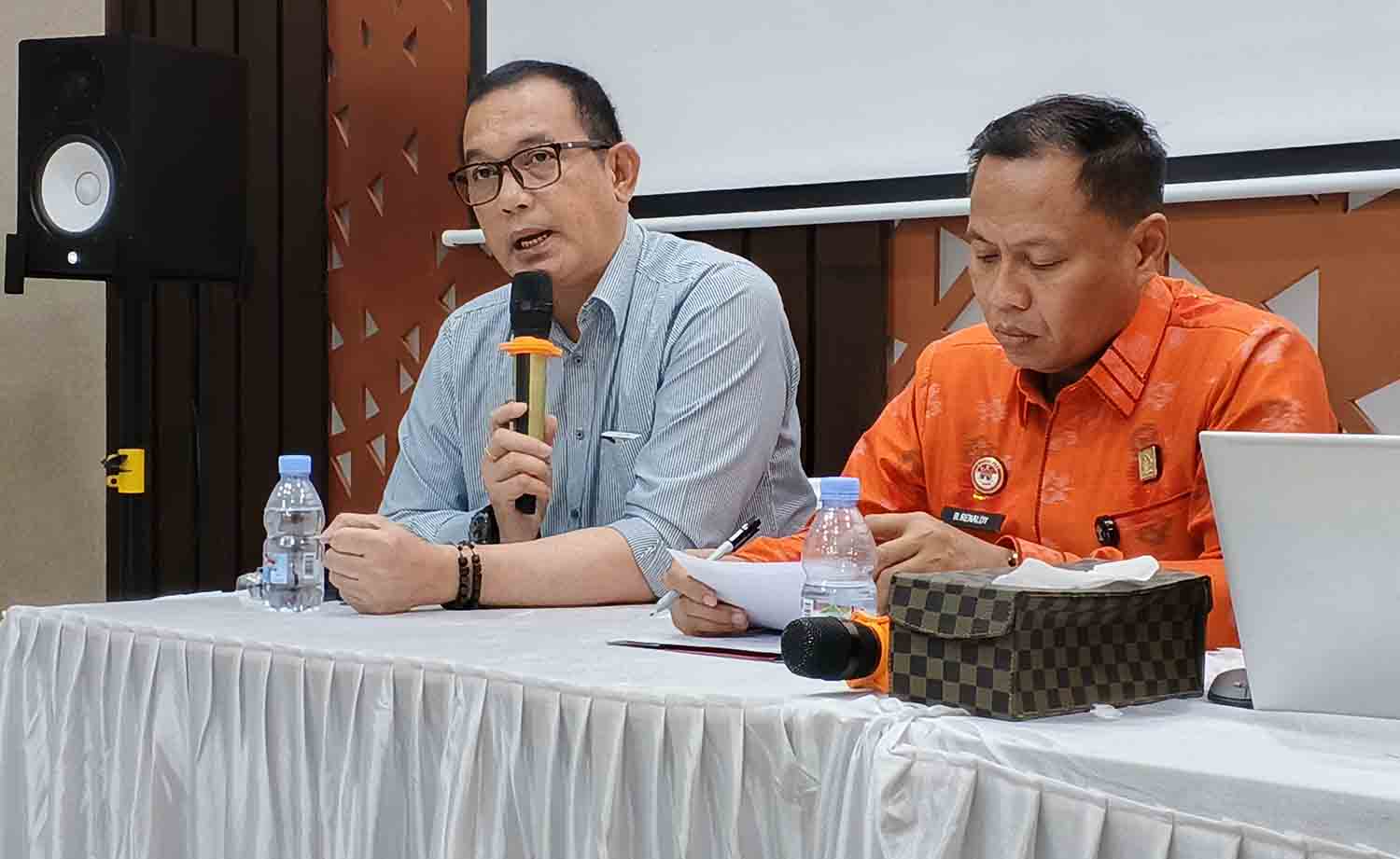 Kepala Bagian Operasi BIN Sulteng, Bernard Kandolia, menyampaikan hasil pemantauan tersebut kepada sejumlah jurnalis saat konfrensi pers terkait kasus OMC palsu di Sekretariat Satuan Tugas Pemberantasan Aktivitas Keuangan Ilegal (Satgas PASTI) Sulteng, Jalan RA Kartini, Kota Palu, Kamis (17/7/2025).