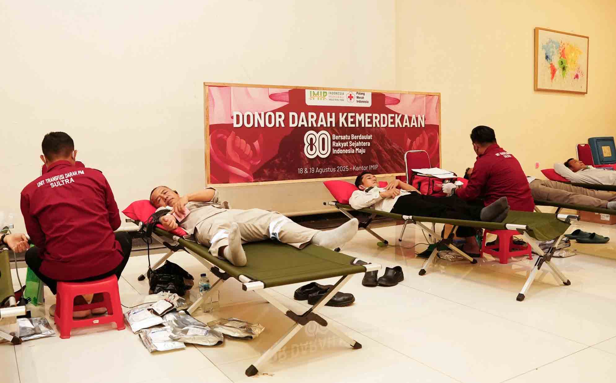 PT Indonesia Morowali Industrial Park (IMIP) kembali menggelar aksi kemanusiaan donor darah dalam rangka merayakan Hari Kemerdekaan Republik Indonesia ke-80 tahun. Kegiatan yang rutin dilakukan setiap tiga bulan ini melibatkan seluruh karyawan di kawasan industri sejak Senin (18/8/2025) hingga (19/8/2025).