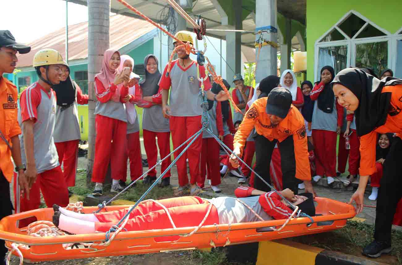 Mereka belajar mengenali potensi bencana di sekitar, memberikan pertolongan pertama, hingga melakukan simulasi evakuasi korban.