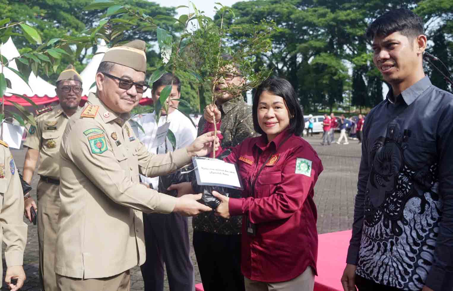 Panitia menutup upacara dengan menyerahkan bibit pohon kepada perwakilan instansi dan perusahaan. Kegiatan ini menjadi simbol komitmen terhadap keselamatan lingkungan dan keberlanjutan.