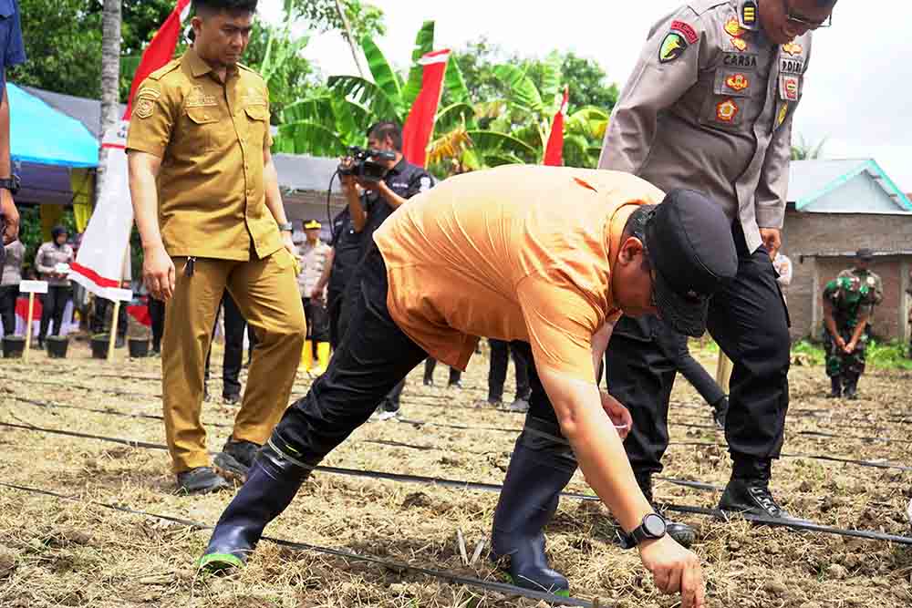 Kapolda Sulbar, Adang, menambahkan penanaman dilakukan di enam kabupaten dengan total luas 14 hektar dan 43 hektar lahan siap tanam.