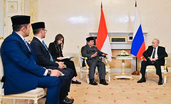 “Saya juga menyampaikan terima kasih kepada Presiden Putin dan pemerintah Rusia atas dukungan Rusia terhadap keanggotaan penuh Indonesia dalam BRICS. Saya juga menyambut sangat gembira telah disepakati antara Indonesia dan Rusia dalam peranan kita dalam Eurasian Free Trade Area, Eurasian Economic Union,” pungkas Prabowo.
