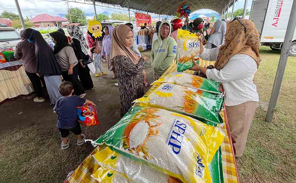Ilustrasi warga berada di stand beras SPHP yang ikut dijual dalam pasar murah Pemkot Palu di Kelurahan Kayumalue Ngapa, Kecamatan Palu Utara. Beras menjadi penyumbang inflasi selama Agustus 2025. Foto: Jufri/Pemkot Palu
