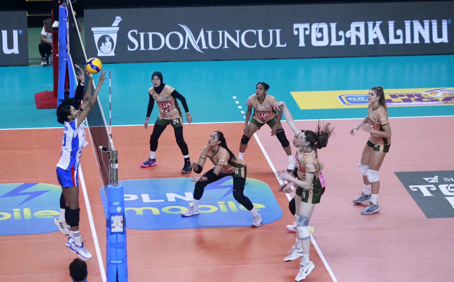 TIM voli putri Gresik Petrokimia Pupuk Indonesia berhasil mencetak kemenangan dramatis atas Jakarta Pertamina Enduro dalam laga seri I final four PLN Mobile Proliga 2025.