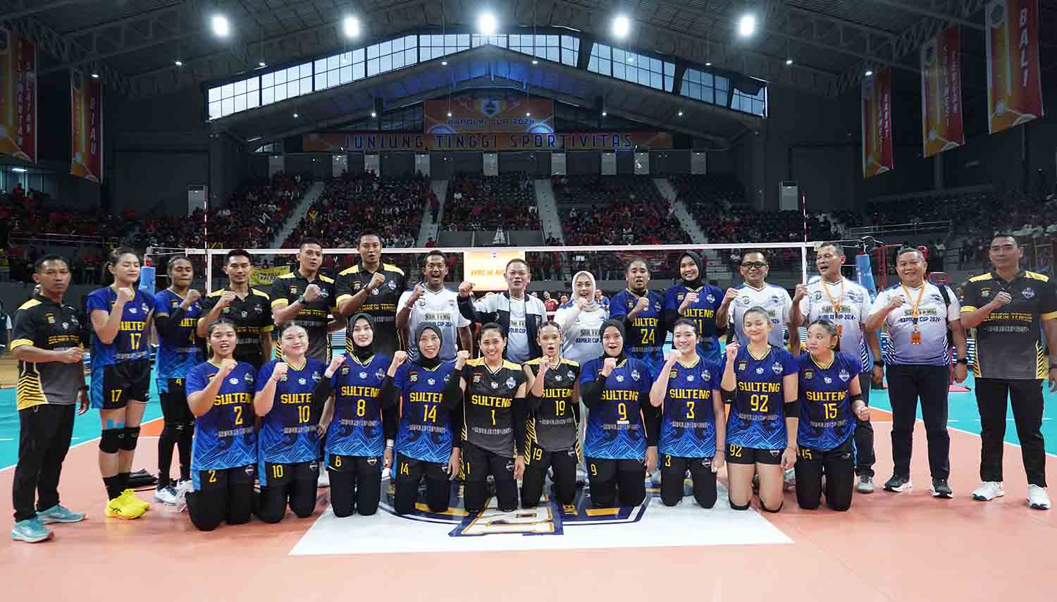 Kapolda Sulteng, Irjen Agus Nugroho foto bersama tim voli putri Polda Sulteng di GOR Terpadu Pontianak, Kamis (10/10/2024). Foto: Humas Polda Sulteng
