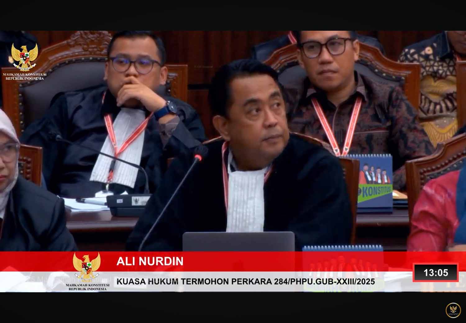 Kuasa hukum KPUD Sulteng, Ali Nurdin mengikuti sidang sengketa hasil Pilkada Sulteng di MK, Kamis (23/1/2025). Tangkapan layar