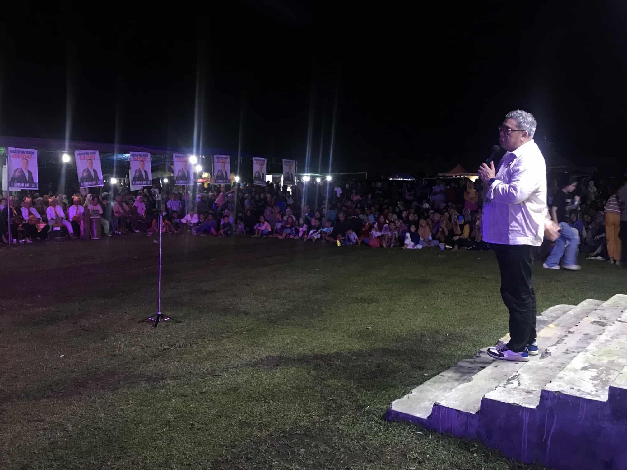 Calon Gubernur Sulteng nomor urut 1, Ahmad HM Ali berpidato di depan ratusan warga yang menghadiri kampanyenya di Bualemo, Kabupaten Banggai, Kamis (17/10/2024) malam. Foto: Tim Media Koalisi Partai BERAMAL Sulteng