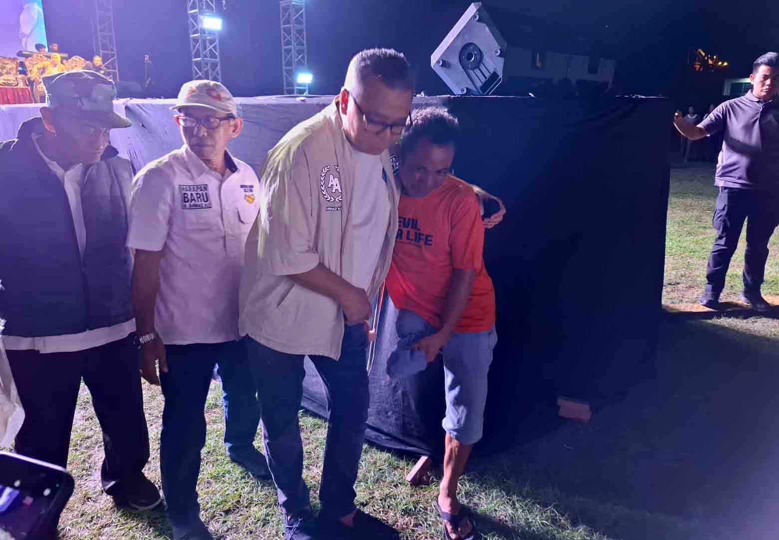 Roni Launi, pria 39 tahun bertongkat, menjadi pusat momen yang membuktikan bahwa empati nyata bisa tumbuh di tengah hiruk-pikuk panggung politik.