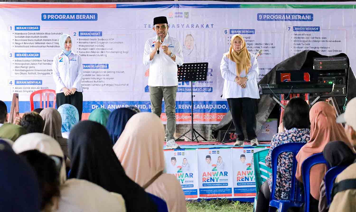 Kampanye berlangsung meriah. Pasangan dengan tagline BERANI tiba di lokasi dan disambut tabuhan gendang serta yel-yel kemenangan dari warga. Banyak warga mendekati Anwar dan Reny untuk berjabat tangan, menunjukkan antusiasme dan dukungan mereka.