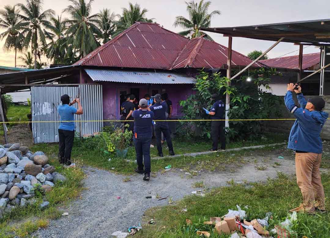 Polisi bersenjata lengkap mengepung rumah semi permanen yang menjadi tempat tinggal Wawan sebelum akhirnya menangkapnya.