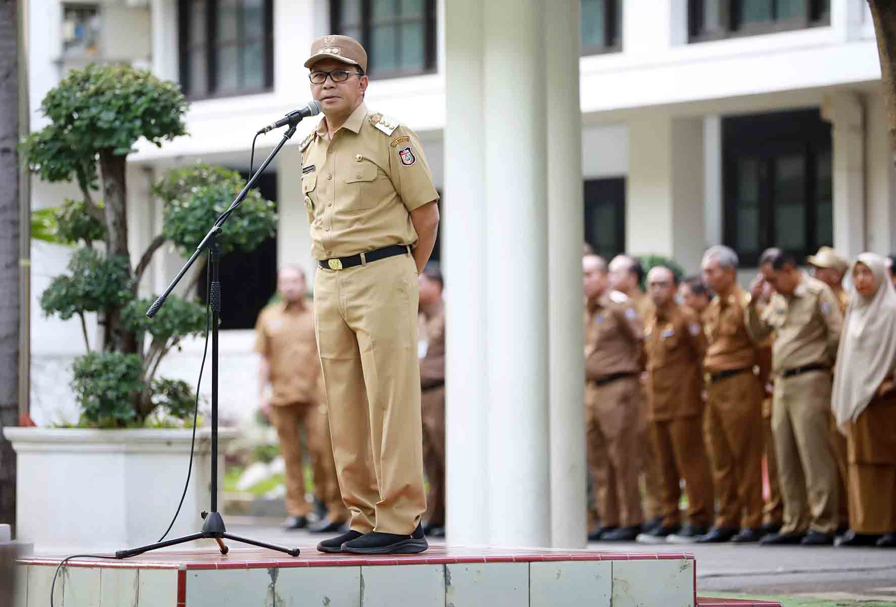 Wali Kota Makassar, Moh Ramdhan Pomanto memimpin apel pagi pada penghujung 2024 di Halaman Kantor Balai Kota Makassar, Senin (30/12/2024). Foto: Humas Pemkot Palu