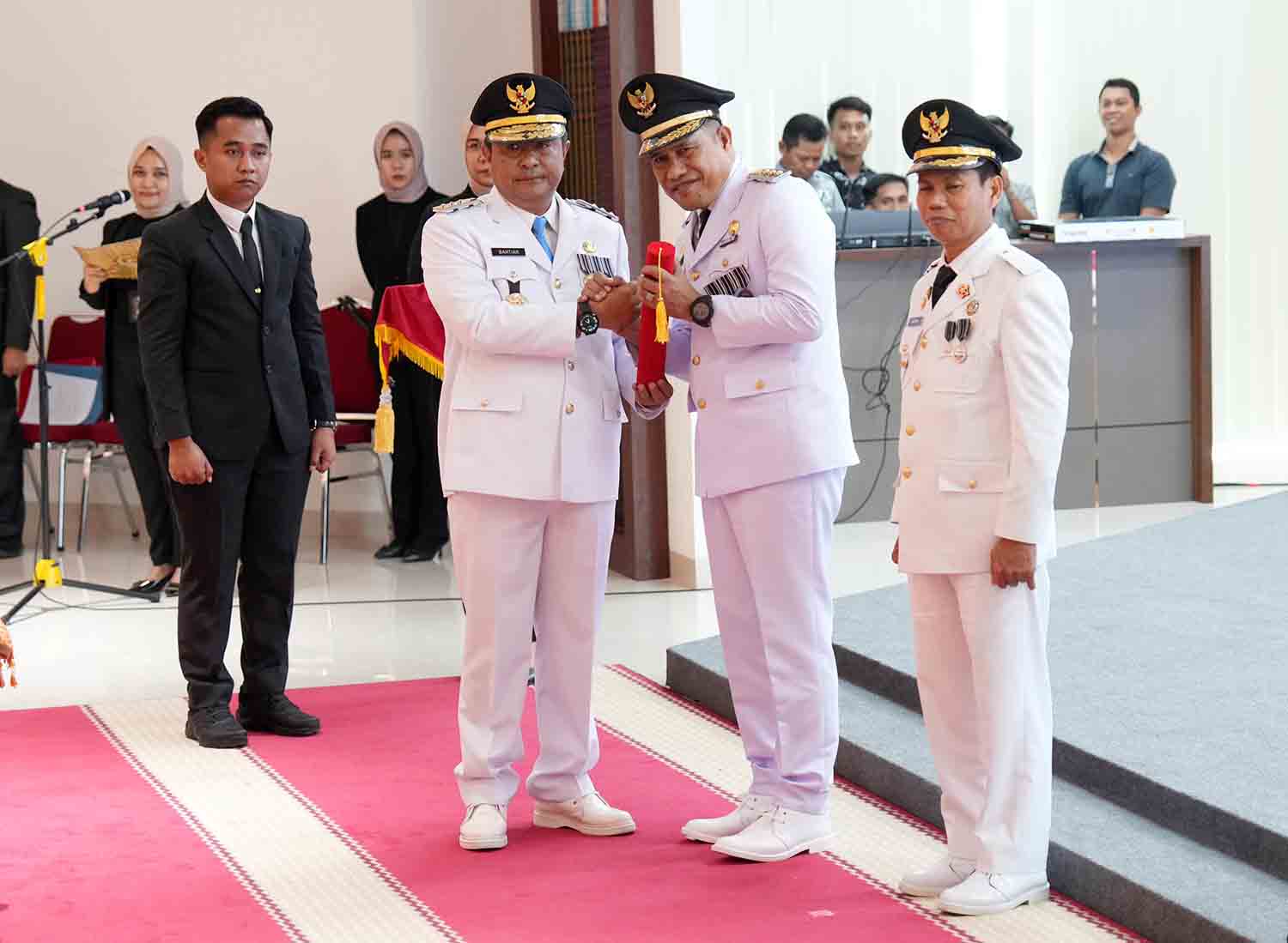 PENJABAT (PJ) Gubernur Sulawesi Barat, Bahtiar Baharuddin melantik Muhammad Hamzih sebagai PJ Bupati Polewali Mandar di Kantor Gubernur Sulbar, Senin (13/1/2025). Muhammad Hamzih sebelumnya menjabat sebagai Sekretaris DPRD Provinsi Sulawesi Barat.