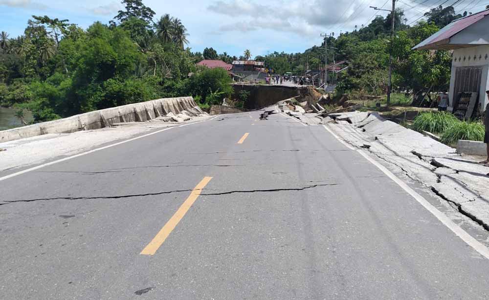 SEBUAH video berdurasi 21 detik memperlihatkan Jalan Trans Sulawesi di Desa Watuawu, Kecamatan Lage, Kabupaten Poso, Sulawesi Tengah, amblas dan menjadi viral. Dalam video tersebut, jalan terbelah dan amblas sedalam sekitar 1,5 meter.
