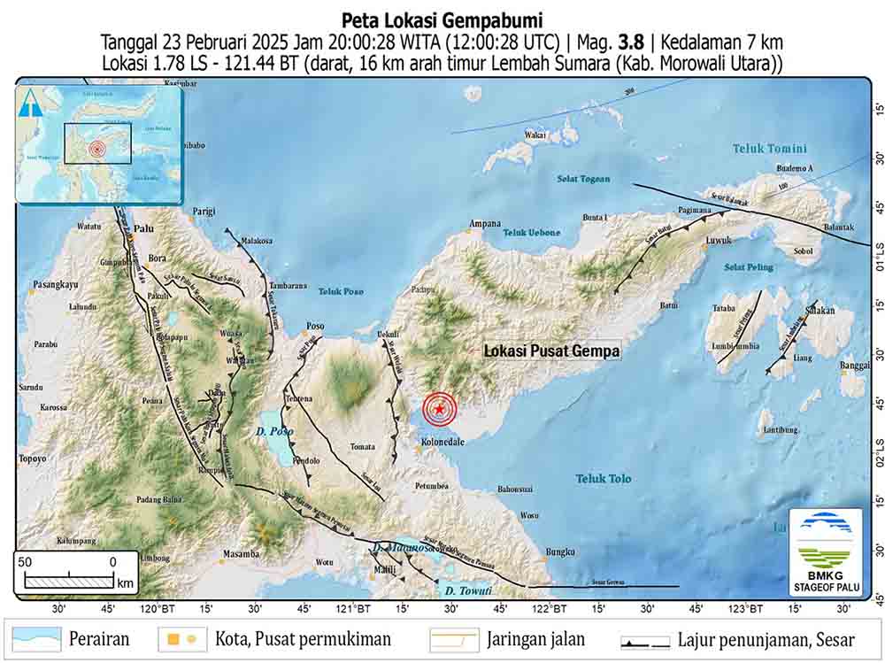 GEMPA bumi berkekuatan Magnitudo 3,8 terjadi di wilayah Kabupaten Morowali Utara, Sulawesi Tengah, Minggu (23/2/2025) pukul 20.00 WITA.
