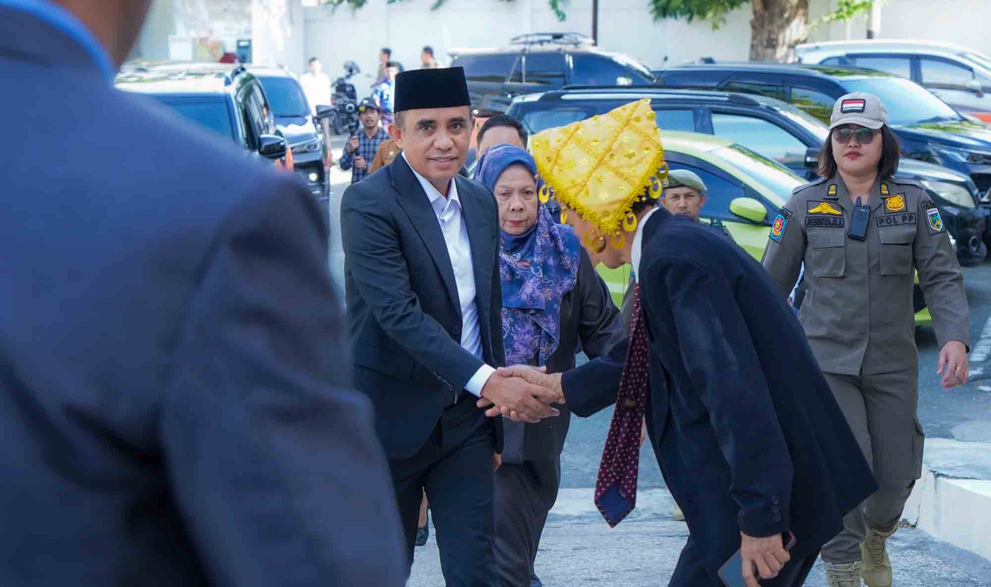 Gubernur Sulteng, Anwar Hafid tiba di kantor DPRD Sulteng untuk menghadiri serah terima jabatan dengan gubernur Rusdy Mastura di Palu, Senin (3/3/2025). Foto: HO