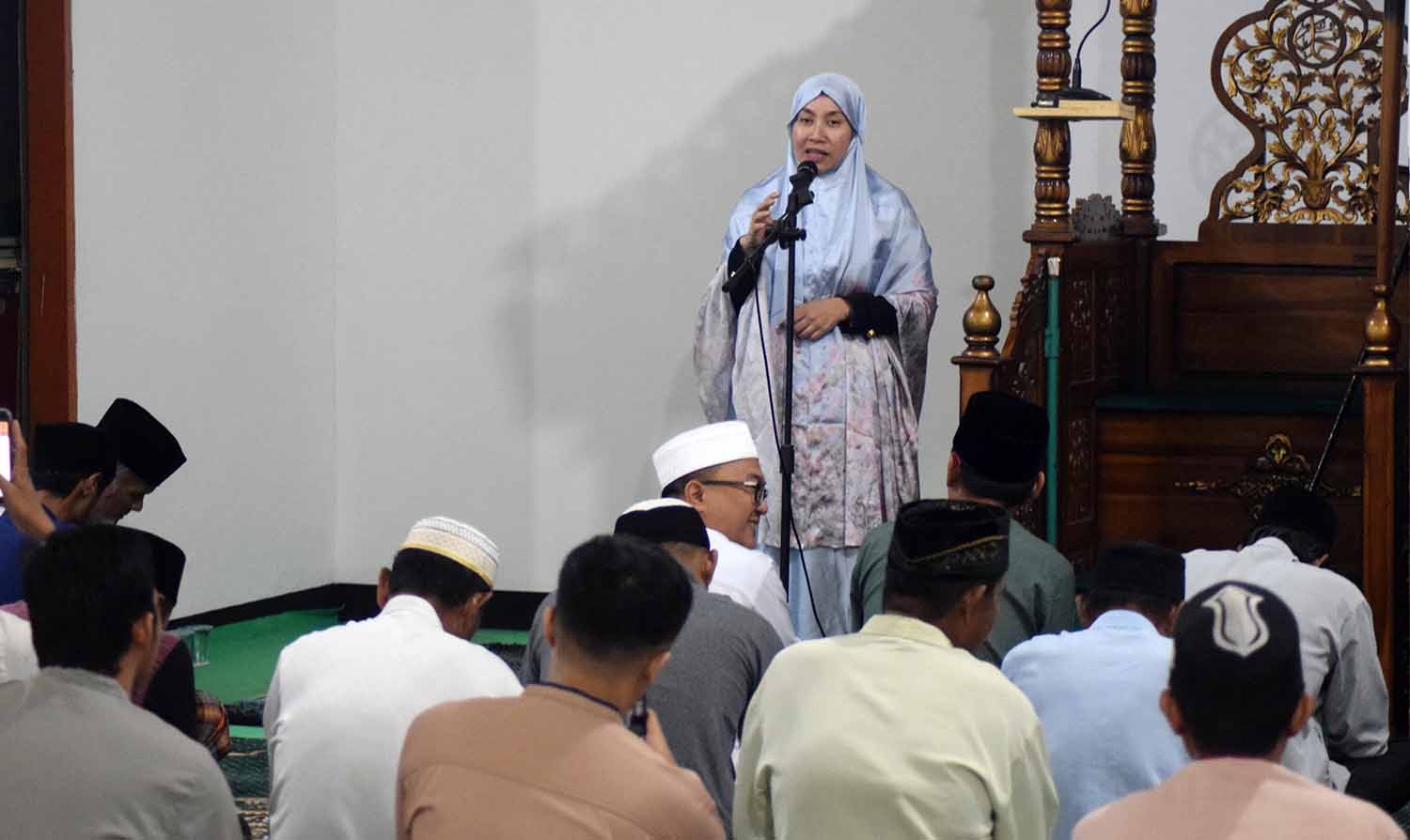WAKIL Wali Kota Palu, Imelda Liliana Muhidin, bersama tim melanjutkan silaturahim Ramadan pada malam ketiga di Masjid Nurul Amin, Kelurahan Kawatuna, Kecamatan Mantikulore, Kamis (20/3/2025). Kegiatan ini menjadi upaya Pemerintah Palu untuk mempererat hubungan dengan masyarakat selama bulan suci.