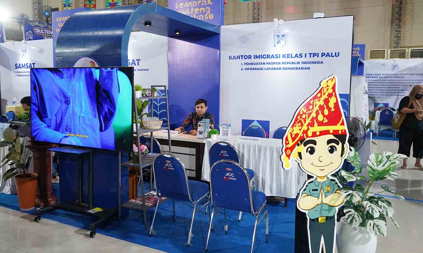 KANTOR Imigrasi Kelas I TPI Palu mendekatkan layanan keimigrasian lewat partisipasi di Semarak Sulteng Nambaso 2025 yang berlangsung di Jodjokodi Convention Center (JCC), Kota Palu, 19 April–15 Mei 2025.