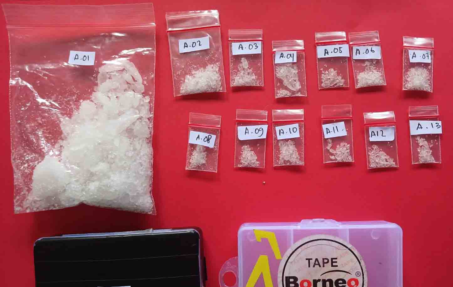 “Dari tangan pelaku, kami menyita 13 paket sabu-sabu dengan berat bruto 27,853 gram, serta dua kotak plastik bening tempat penyimpanan barang bukti,” ungkap Kasat Reskoba Polresta Palu, AKP Usman.