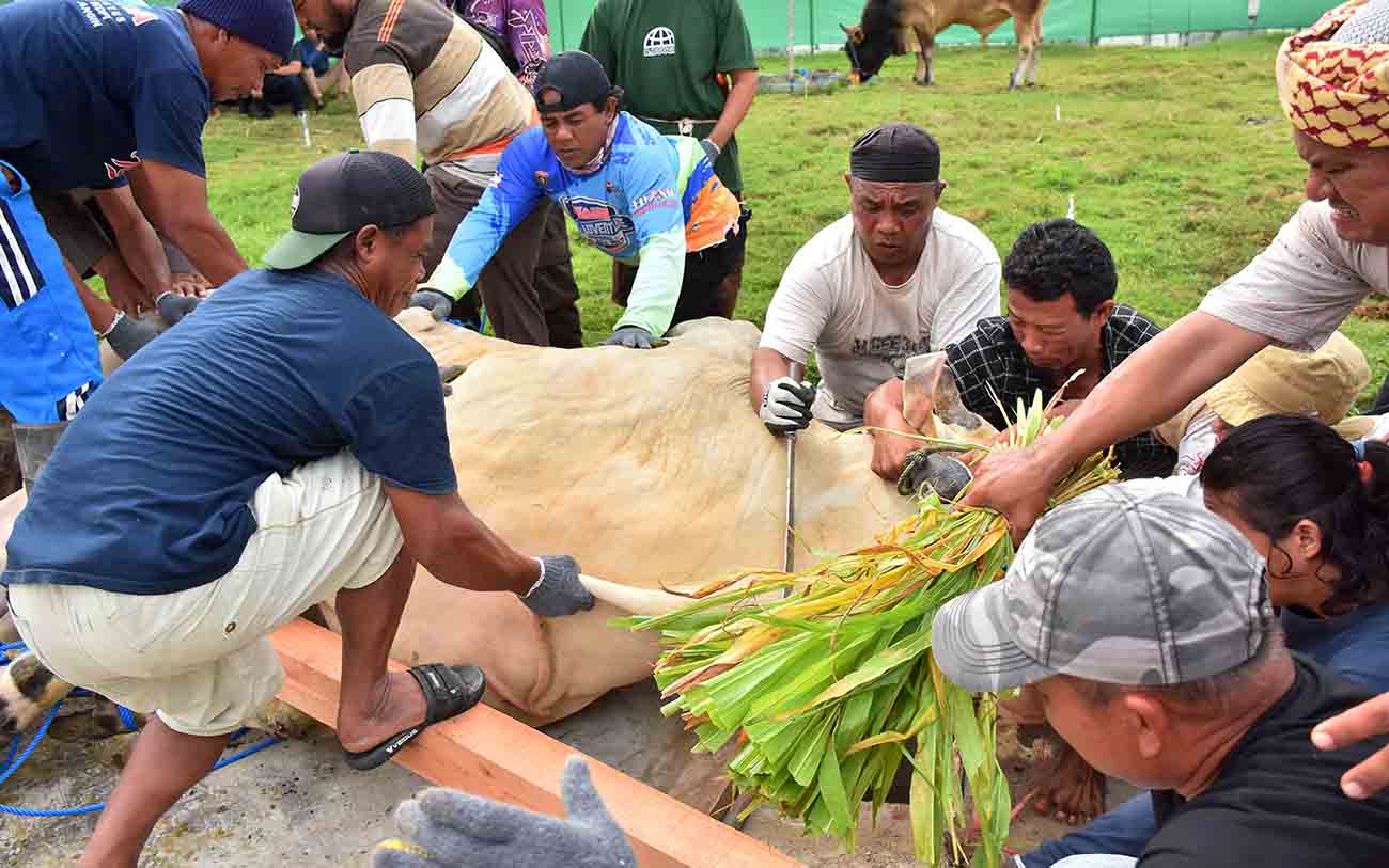 KEPOLISIAN Daerah (Polda) Sulawesi Tengah bersama jajaran Kepolisian Resor (Polres) melaksanakan penyembelihan hewan kurban Idul Adha 1446 hijriah, Jumat (6/6/2025). 195 sapi dan 36 kambing dikurban untuk masyarakat.