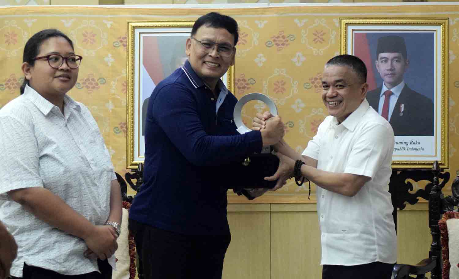 PEMERINTAH Kota Palu menyambut kedatangan rombongan Kantor Staf Presiden (KSP) Republik Indonesia di Bandara Mutiara Sis Al-Jufri, Rabu (11/6/2025).