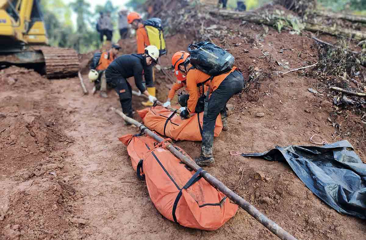 Ilustrasi tim SAR mengevakuasi dua korban tanah longsor terakhir yang ditemukan di Desa Tirtanagaya, Kecamatan Bolano Lambunu, Kabupaten Parigi Moutong, Sulawesi Tengah, Rabu (26/6/2025). Foto: Basarnas Palu