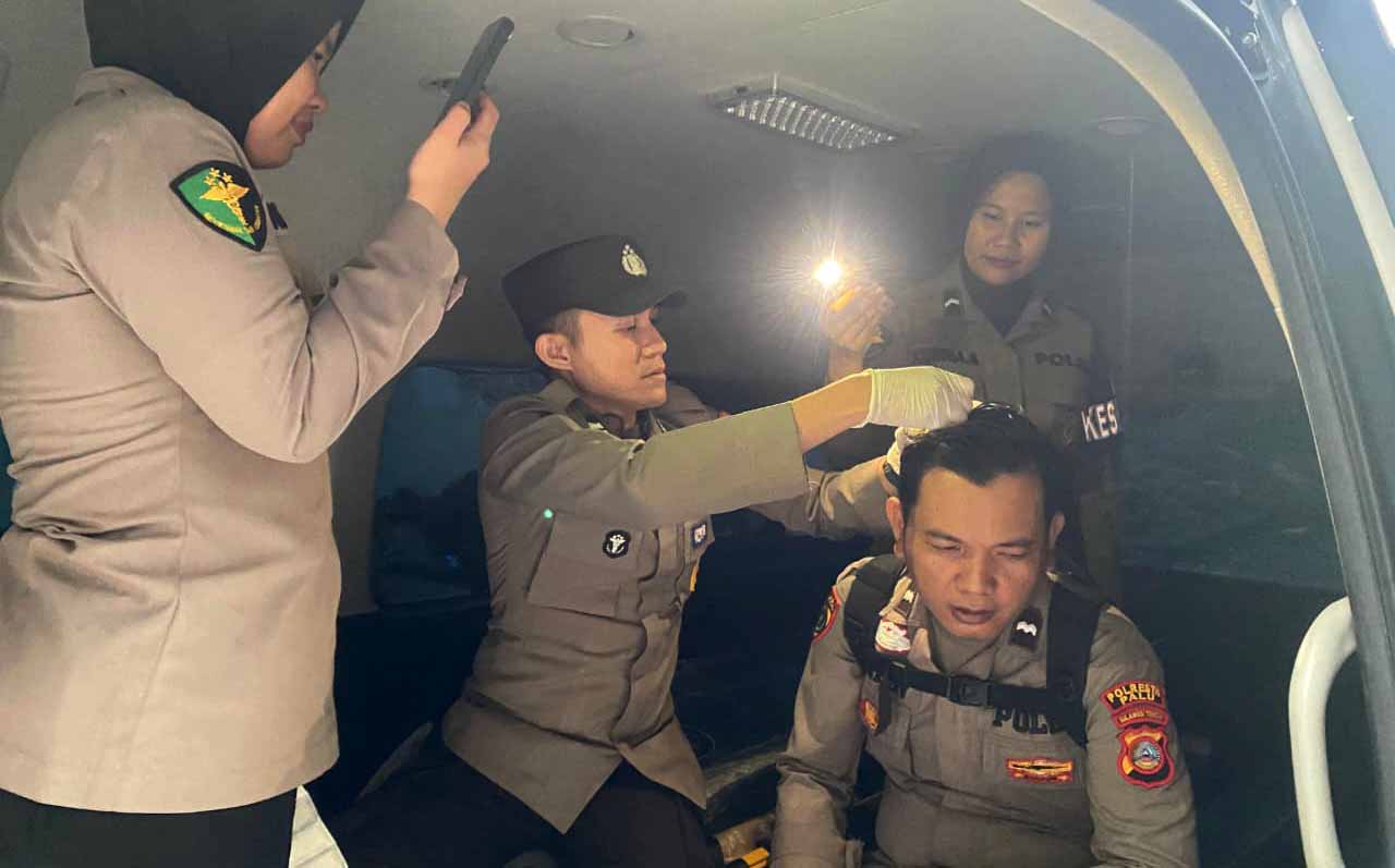 Dalam insiden itu, tiga polisi terluka. Di antaranya, satu mengalami sobek di bibir hingga butuh empat jahitan, satu luka di kepala, dan satu cedera di punggung tangan kanan.