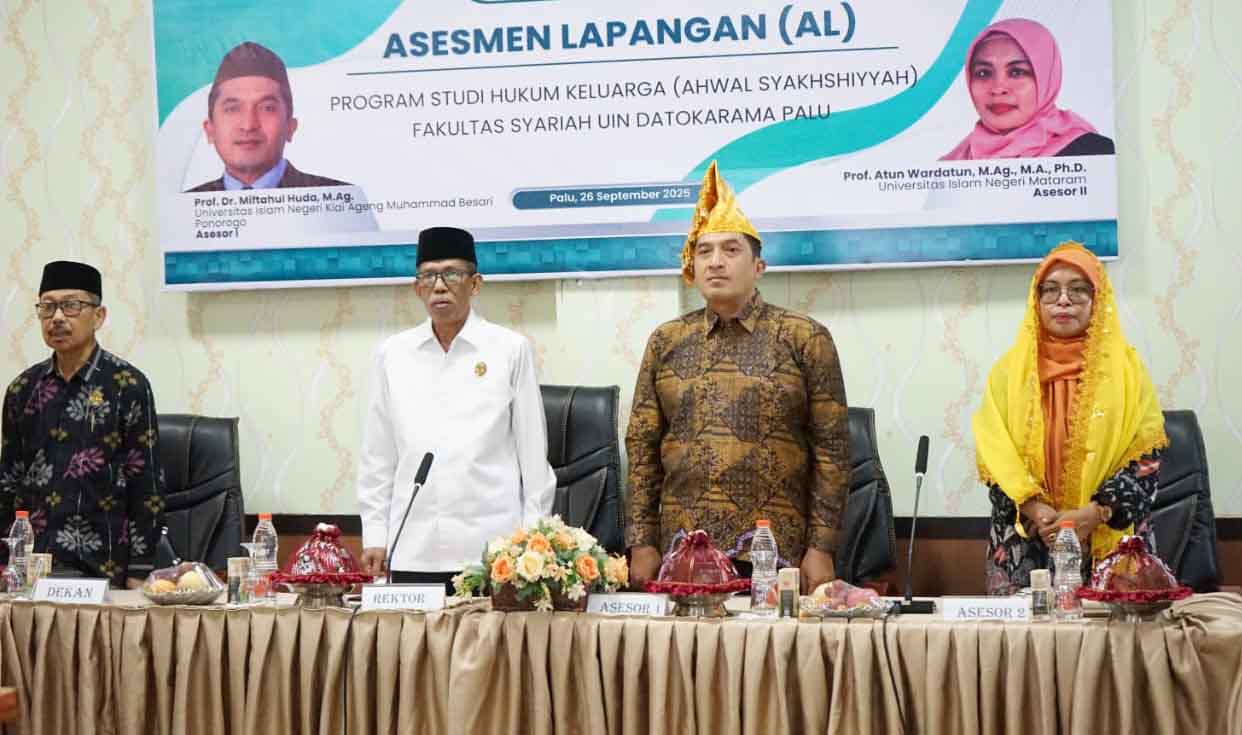 BADAN Akreditasi Nasional Perguruan Tinggi (BAN-PT) menugaskan dua asesor untuk melakukan asesmen lapangan Program Studi Hukum Keluarga Strata Satu pada Fakultas Syariah Universitas Islam Negeri (UIN) Datokarama Palu, Jumat (26/9/2025).