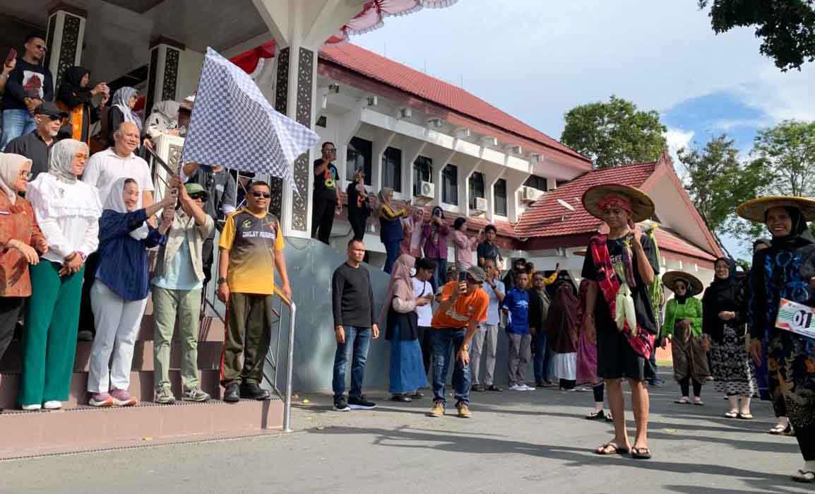 Wakil Wali Kota Palu, Imelda Liliana Muhidin melepas Lomba Busana Karnaval dan Pawai Budaya Nusantara 2025, Jumat (7/11/2025), di halaman Kantor Wali Kota Palu. Foto: Rusdia/Eranesia.id