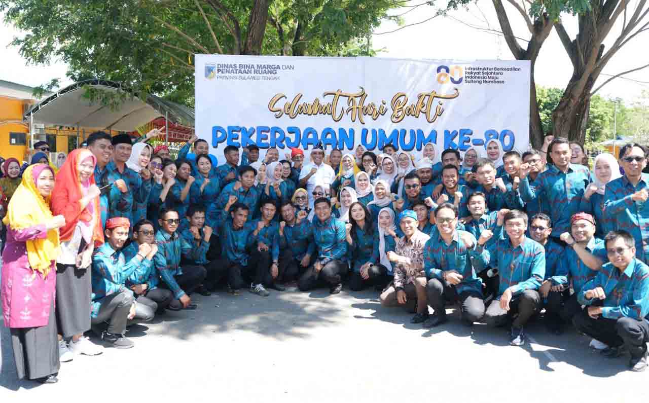 GUBERNUR Sulawesi Tengah, Anwar Hafid memimpin upacara Peringatan Hari Pekerjaan Umum ke-80 di halaman Kantor Dinas Pekerjaan Umum Bina Marga, Sulawesi Tengah, Rabu (3/12/2025).