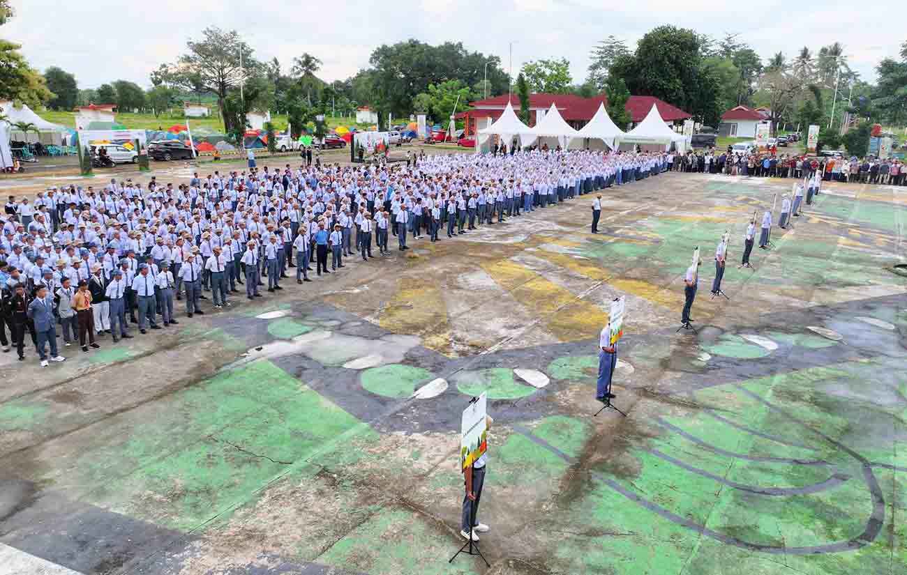 Seluruh peserta jambore OSIS mengikuti apel di Lapangan Bumi Perkemahan Caddika, Kabupaten Gowa, Sulawesi Selatan, Jumat (12/12/2025). Kegiatan ini diikuti 1.500 pelajar dari pelbagai daerah di Sulsel. Foto: HO/Eranesia.id