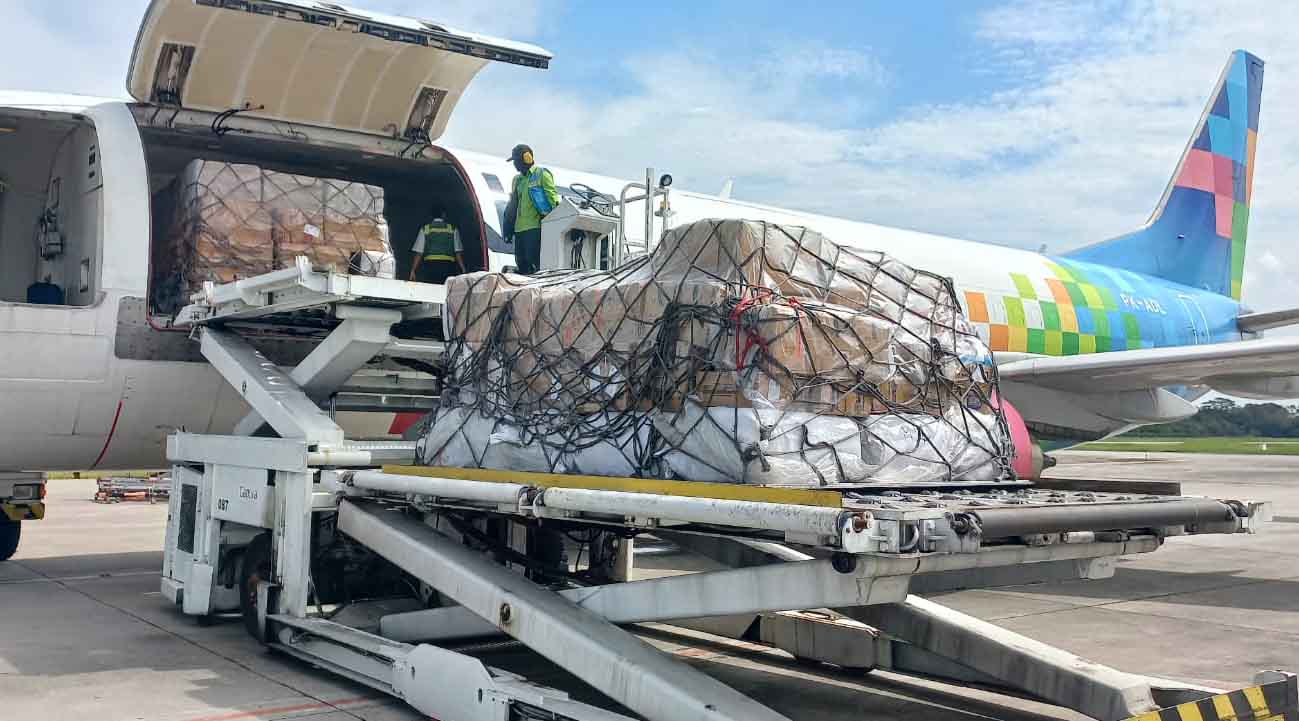 Kloter pertama berisi 14 ton, kloter kedua 13 ton, dan kloter ketiga 9 ton, semuanya dikirim menggunakan pesawat carter.