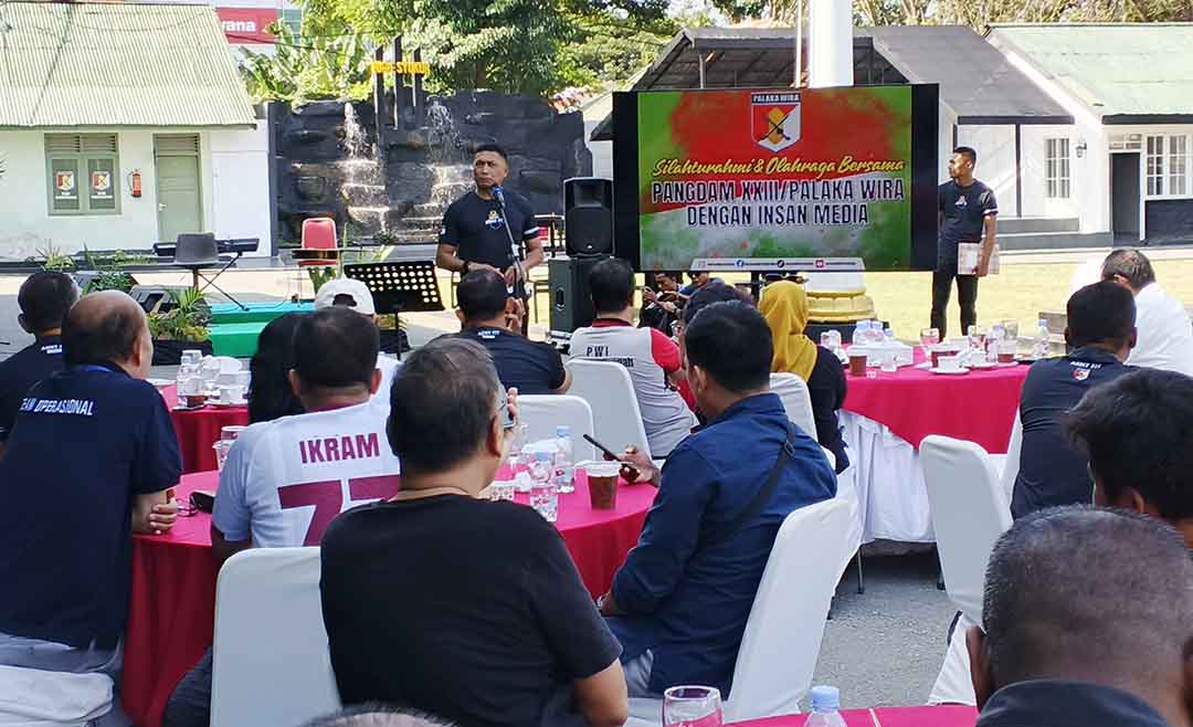 KOMANDO Daerah Militer (Kodam) XXIII/Palaka Wira Sulawesi Tengah–Sulawesi Barat menggelar silaturahmi dan olahraga bersama jurnalis. Kegiatan berlangsung di halaman Kantor Kodam XXIII/Palaka Wira, Kota Palu, Selasa (27/1/2026).