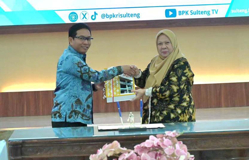 WAKIL Gubernur Sulawesi Tengah, Reny A Lamadjido menerima Laporan Hasil Pemeriksaan (LHP) Badan Pemeriksa Keuangan (BPK) RI Semester II Tahun 2025. Penyerahan LHP tersebut berlangsung di Kantor BPK Perwakilan Sulawesi Tengah, Rabu (28/1/2025).