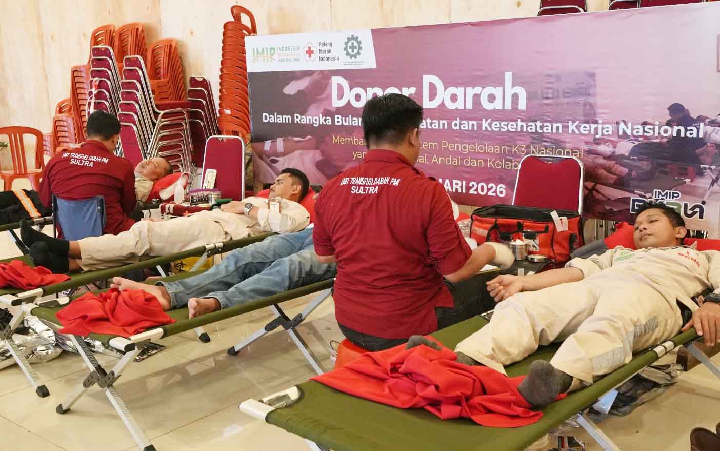 SEBAGAI wujud kepedulian sosial dan tanggung jawab kemanusiaan, PT Indonesia Morowali Industrial Park (IMIP) kembali menggelar donor darah. IMIP menggelar kegiatan ini di Aula Serbaguna PT IMIP, Senin (9/2/2026).