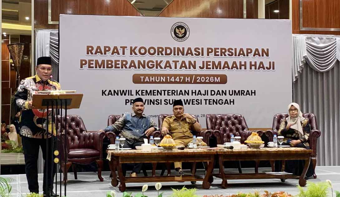 KANTOR Wilayah Kementerian Haji dan Umrah (Kanwil Kemenhaj) Sulawesi Tengah menggelar rapat koordinasi. Kegiatan ini untuk mematangkan persiapan pemberangkatan Jemaah Calon Haji (JCH) 1447 Hijriah/2026 Masehi.