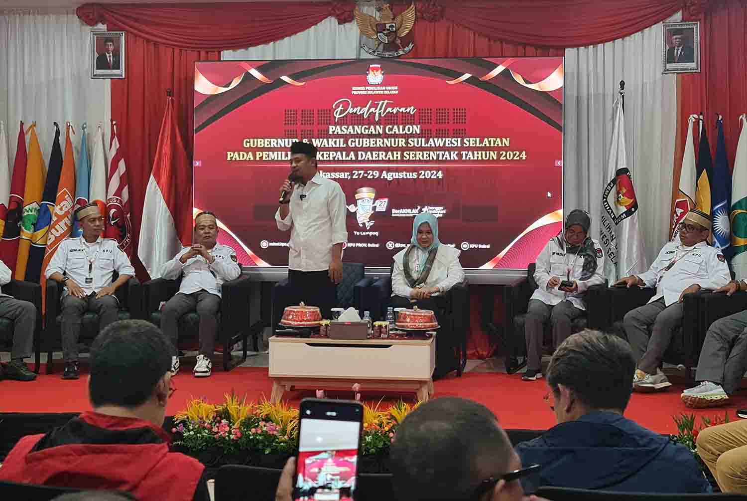 ANDI Sudirman Sulaiman dan Fatmawati Rusdi mendaftar sebagai calon gubernur dan calon wakil gubernur ke KPUD Sulawesi Selatan di Jalan AP Pettarani, Makassar, Kamis (29/8/2024). Pasangan Andalan Hati itu menjadi yang pertama mendaftar untuk Pemilihan Kepala Daerah (Pilkada) 2024 provinsi itu.