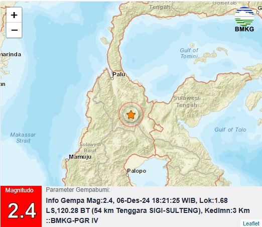 GEMPA bumi dengan magnitudo 2,4 melanda Sigi, Sulawesi Tengah, Jumat (6/12/2024). Masyarakat dimbau tetap tenang.