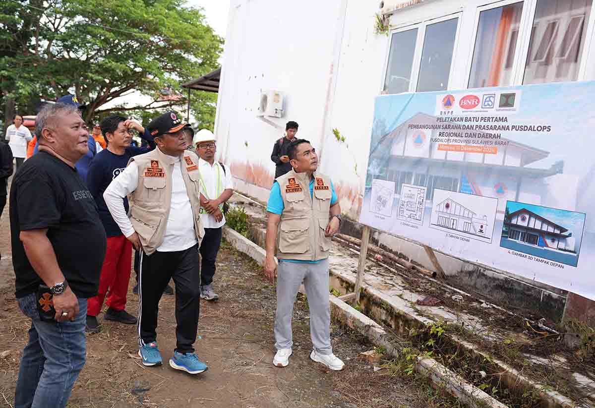 PENJABAT Gubernur Sulawesi Barat (Sulbar), Bahtiar Baharuddin, memulai pembangunan Pusat Pengendalian Operasi Penanggulangan Bencana (Pusdalops) BPBD provinsi itu, Jumat (13/12/2024).