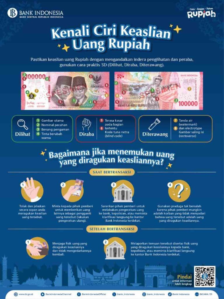 “Laporkan uang Rupiah yang diragukan keasliannya kepada pihak berwenang, perbankan, atau langsung ke Bank Indonesia,” tegas Rony.