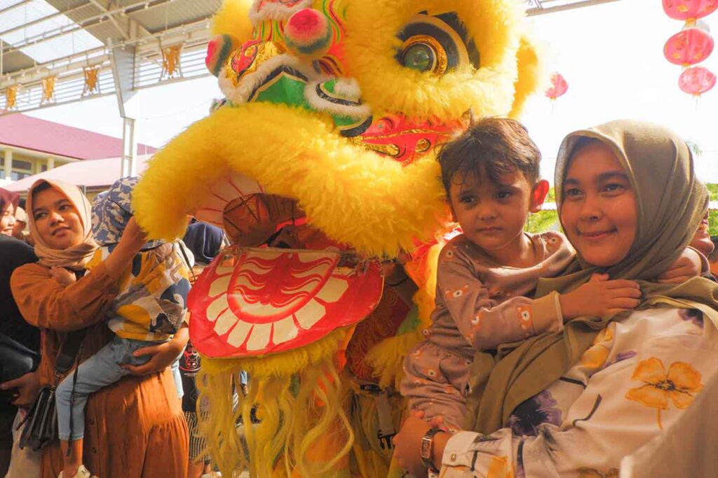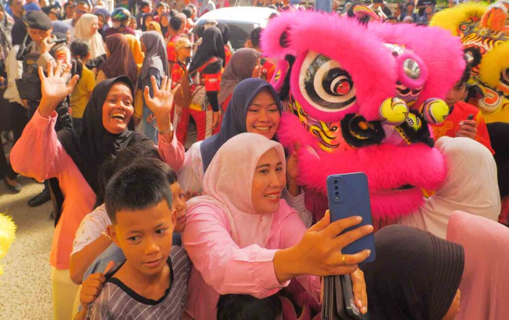 Warga Aceh sangat antusias menyaksikan pertunjukkan ini, mereka bahkan tidak lupa mengabadikan moment dengan cara swafoto bersama barongsai.