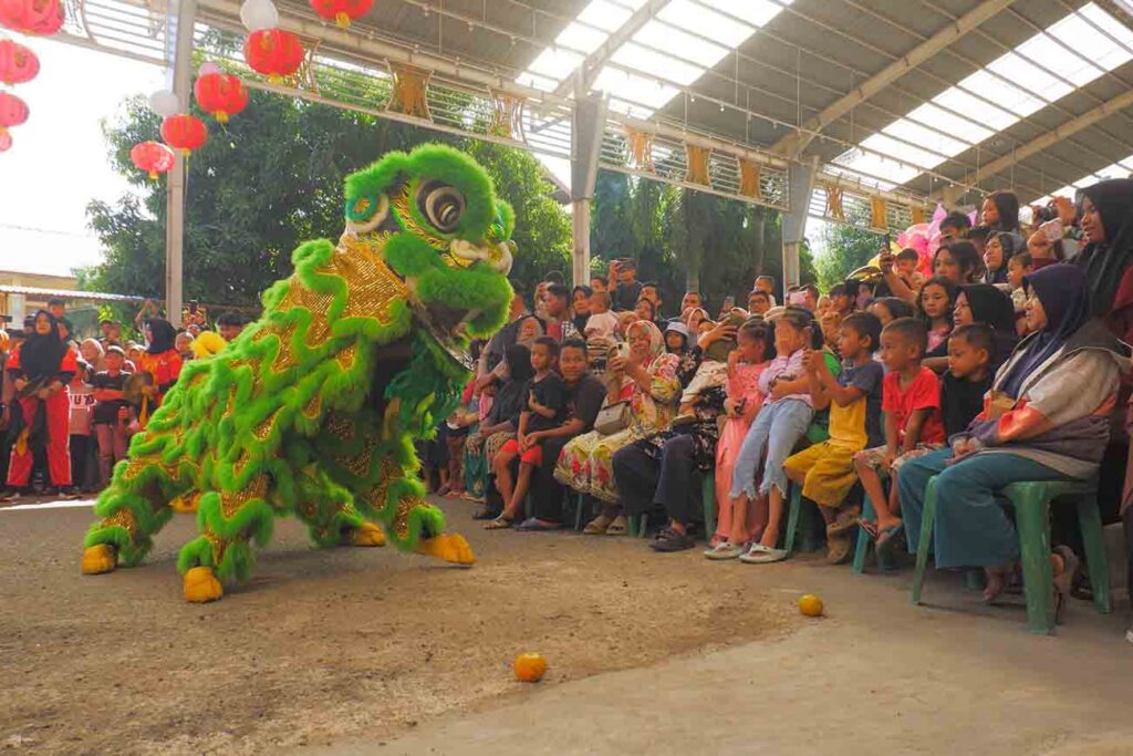 Salah satunya, pertunjukkan barongsai yang tidak hanya dimainkan oleh keturunan Tionghoa beragama Budha, namun juga dimainkan oleh beberapa warga lokal yang mayoritas beragama Islam.