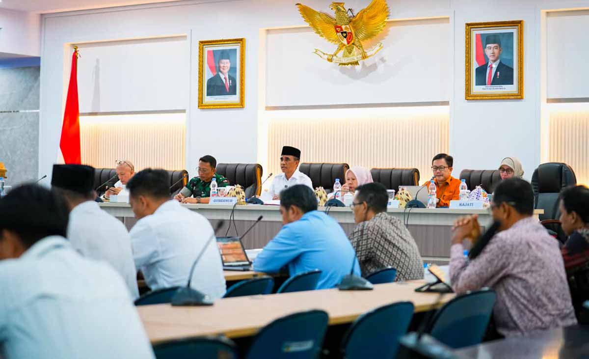 GUBERNUR Sulawesi Tengah, Anwar Hafid memimpin Rapat Koordinasi Tim Pengendalian Inflasi Daerah (TPID) bersama seluruh kabupaten/kota di ruang Polibu, Kantor Gubernur, Rabu (3/9/2025).